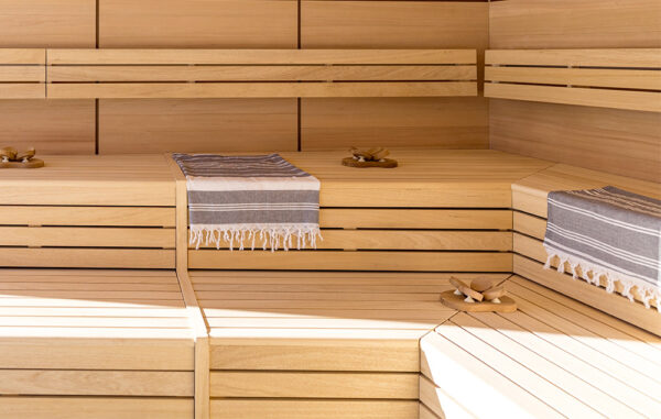 Experience the synergy of natural materials and wellness rituals, enhancing your sauna journey with every detail.